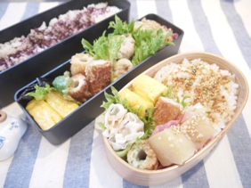 5月27日 月曜日 先週は、高校の体育祭がありました。 ![]() たまに登場のおにぎりランチケース。 ![]() 海老フライやスパゲティ、ウインナーなど。 中華サラダやフライドポテトも入れた。 おにぎりは肉味噌とドライカレー入り! ![]() 体育祭日和の快晴! 自分の子供以外、まったく知る人もいないので ちょっと見学して…と思っていたら すごく面白くて、午後の部まで観戦しました。 当日は無礼講!? 金髪から赤、オレンジと多彩。 ヘアスタイルもいろいろ。 エクステ、ドレッドヘアー? 髪の毛を見ているだけでも、楽しくなりました。 応援合戦もすごかったー! もっと驚いたのは、親の観戦率の高さ。 平日なのに、たくさん見に来ている! みなさん、ものすごい望遠レンズの一眼レフ持参。 来年は開会式から見に行こうっと♪ お金を貯めて、望遠レンズも買おう… ![]() 週末の部活弁当は、 オムレツのせチキンライス。 ![]() 今日は鶏そぼろのお弁当。 凍ったまんまの枝豆は、保冷剤のかわりに。 体育祭で燃え尽きたあとは いよいよ高校初めての中間テスト。 厳しそうだ…。 |