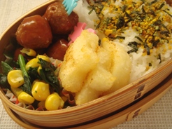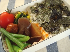 11月8日 木曜日 ![]() 倉敷意匠のほうろうのお弁当箱。 いい感じだけど、重い。 なので、自宅での自分弁当用。 ![]() 娘のお弁当の残り物と 冷蔵庫にあったモノを詰め込んだ 自分お昼用弁当。 娘弁当には有り得ない、 プチトマトも茹でインゲンも お漬物も入っています〜。 2段にしてあるのり弁もお楽しみ。 先日のためしてガッテンで お弁当に入れるプチトマトは へたを取った方がいいと言っていたので (雑菌が繁殖しやすくなる?) このあとすぐに取りました。 プチトマトや茹で野菜が入ると 彩りよくまとまるのになぁ。。。 ![]() 学校用、娘弁当。 今日はめずらしく卵なし。 本人の大好きな ミートボールとお星様ポテト。 |