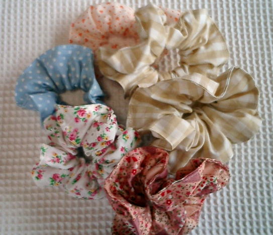 小さな布で、簡単にシュシュを作りました♪