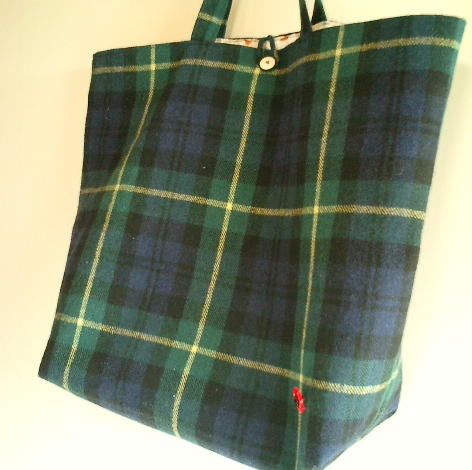 残り布で自分用の普段使いバッグを。内布はお気に入りの小鳥さん。