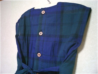 背中にボタンを4つつけ、リボンでウエストを締めるようになっています。