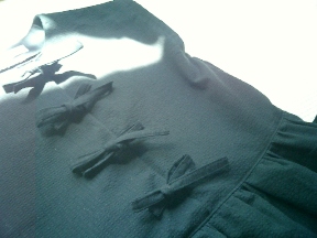 前はボタン部分をリボンで結ぶスタイル。